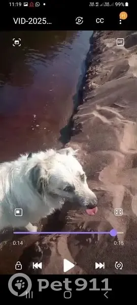 Метис алабая, окрас белый с жёлтоватым оттенком и нечёткими серыми пятнами, уши и хвост не купированы, на шее коричневый ошейник; Выбежал из дома в новогоднюю ночь один и не вернулся. Скорее всего, напугался фейерверков