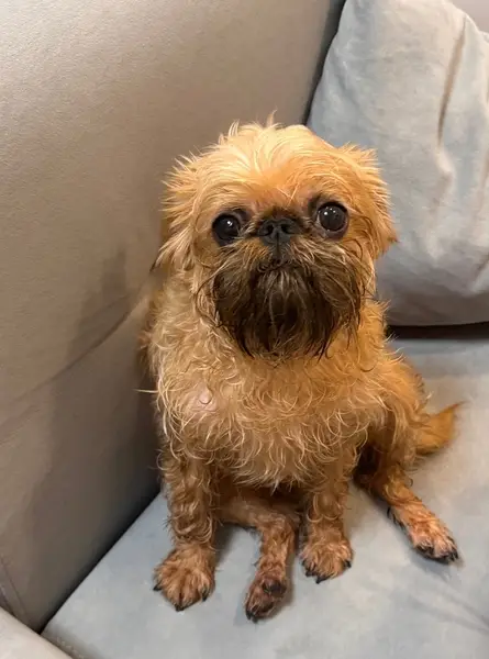 Найдена сука Грифон, возраст 5-7 лет, предположительно сбила машина (шатается из стороны в сторону, пугливая). Срочно ищем хозяев. Собаку везут в клинику.