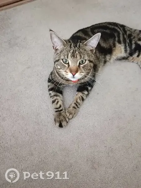 Крупный кот, метис мейкуна. Окрас бурундука, на спине полосы, сбоку круги. Серый. Диковатый. Есть ошейник от клещей и красный медальон с кверкодом на случай пропажи Не кастрирован Кличка Лютик