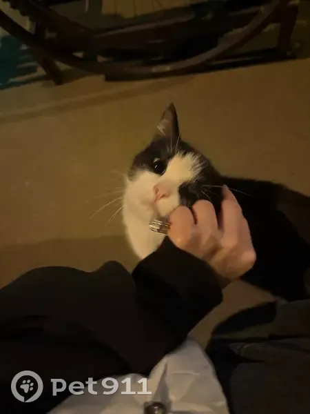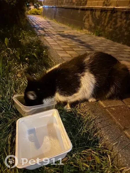 Очень ласковая кошка , черно белый окрас, ходит в районе коммунарки. Худая, гладкая шерсть , людей не сильно боится