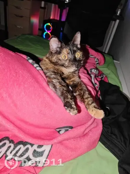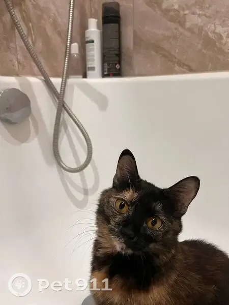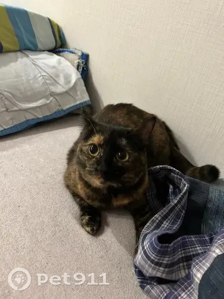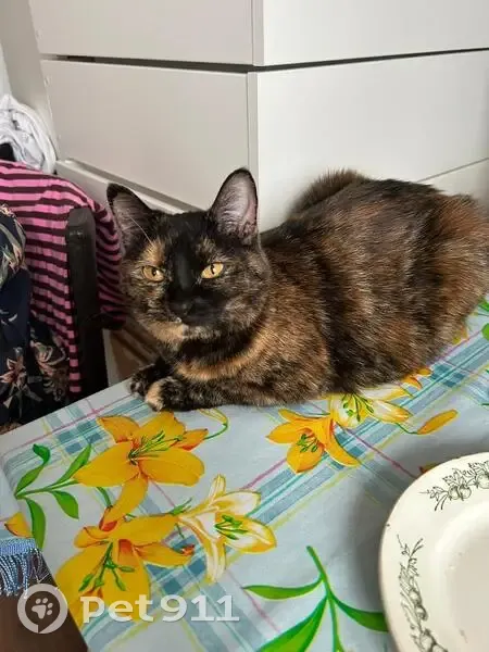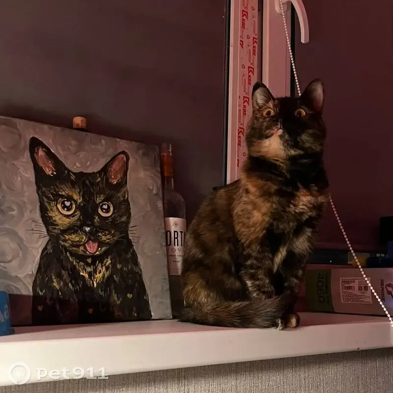 Могла выбежать в подъезд или выпрыгнуть в окно (маловероятно, т. К. Было на проветривании). Окрас темный черепаховый (черно-рыжий), размер не крупный, глаза большие оранжевые. К людям относится очень дружелюбно, но на улице могла сильно испугаться.