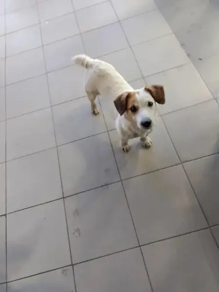 Собака средних размеров,Окрас белый с рыжим. Морда с длинными волосами. Смесь с терьером. Пол мужской . Услышал салюты и убежал в 19:30 в районе липового парка, коммунарка