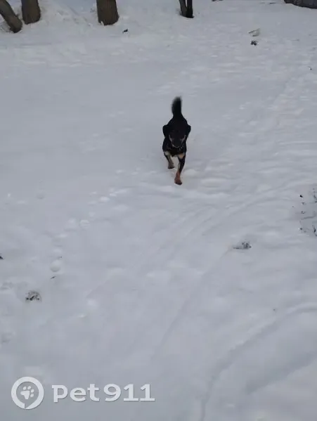 Найдена собачка, что то между таксой и тойчиком, с ошейником, по размерам чуть больше таксы, очень игривый, видимо совсем молодой, не уходит, кружит вокруг наших домов, на ночь забираю домой, мороз еще до 20,может кто то заберёт. 89241169375