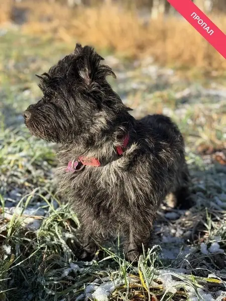 Маленькая собака, чёрного окраса, грязный и немного обросший