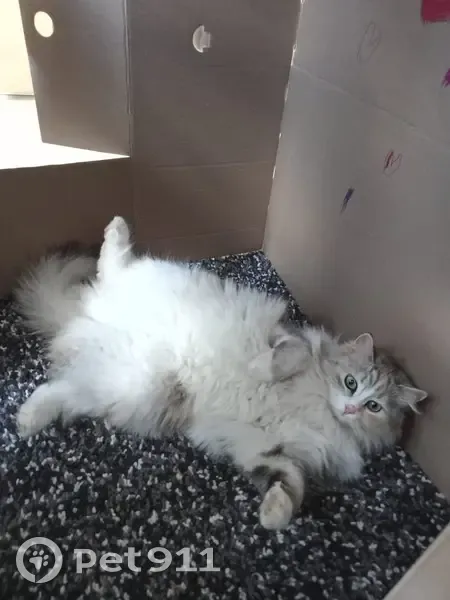Пропала после посещения ветеринарной клиники, выскочила из рук и убежала в сторону леса. Окрас трехцветный (серый, белый, рыжий) Молодая, небольшая кошечка, пушистая, длинношерстная