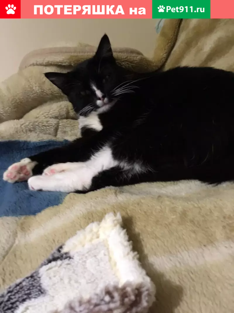 Пропал кот, окрас чёрный с белым, кличка Вася...