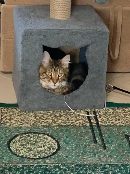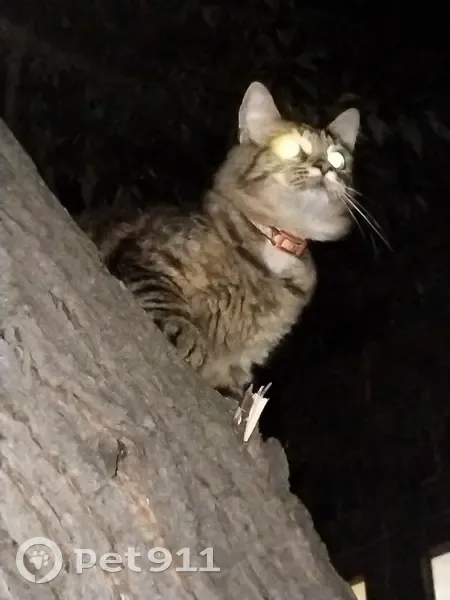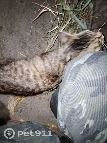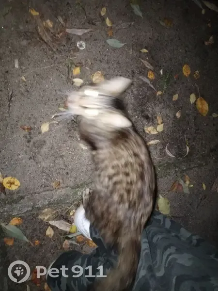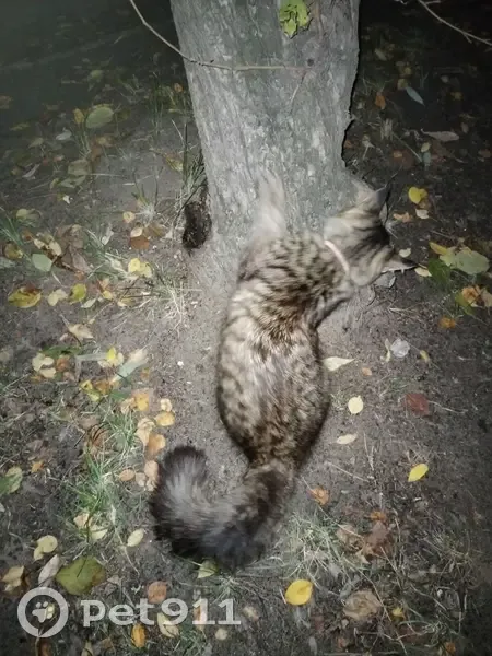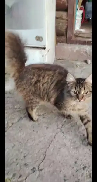 На вид маленькая (как будто ей год), хвост пушистый. Ходила бродила без какой либо цели, потом решила попытаться залезть на дерево. Ошейник цвета коричневый или что то в этом роде. Добрая, маленькая и игривая, чуть не укусила (но любя без агрессии). Трется обо все что попадется (но .
