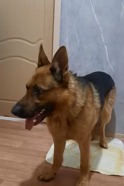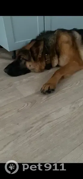 Коричневый ошейник, окрас классический рыжий, Немецкая овчарка. Убежала из дома, муж поехал на машине, она рванула за ним.. Открыла калитку, впервые такое произошло, гуляла во дворе.