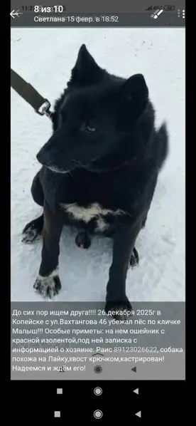 На нем ошейник с красной изолентой. Под ней записка с информацией о хозяине.