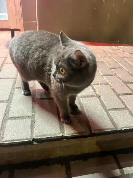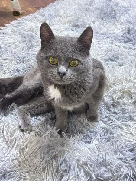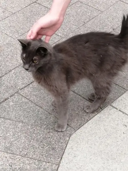 Кот серый, белая манишка. Обретается в районе поляны возле лесхоза ЛО ("Чаепитие в Мытищах", конюшня). Кажется, летом его уже искали, была объява. В обед ходим гулять, подкармливаем. Удалили клеща с головы. Встречает регулярно.