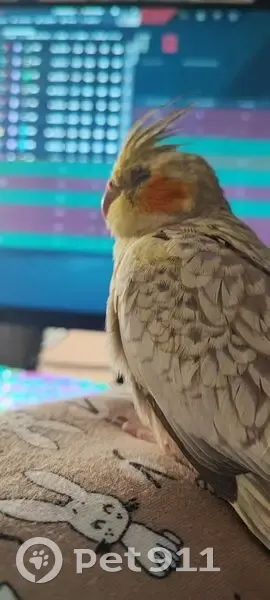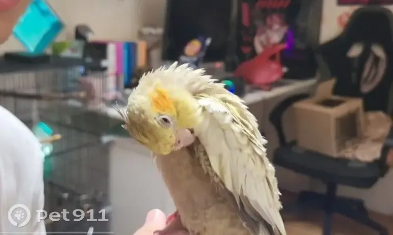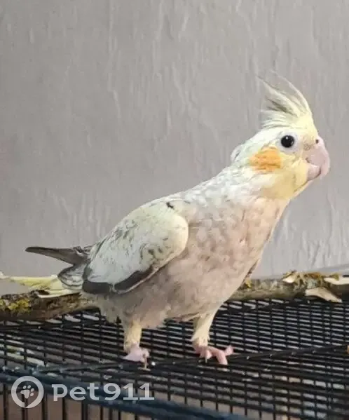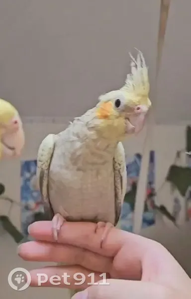 Откликается на свист или на кличку ее подруги - Черри. Домашняя, маленькая и глупая на вид. Людей бояться не должна. Окрас: серое тело, желтая голова и перемешанные крылья с хвостом.