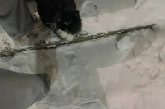 Чёрный с белыми носочками на лапах, белая грудка. Пушистый. Есть ошейник от блох с красным адресником (сердечком). Гулял всегда с самого детства. Сейчас ему 8,5 лет. Пугливый. Идёт на звук шуршащего пакетика корма (влажного).