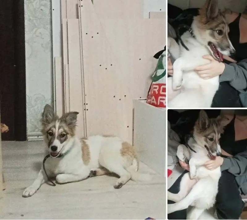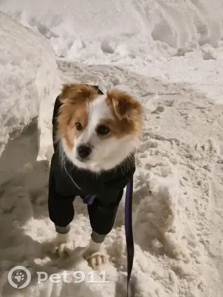 Потерялась собака 02.03.2026 г., зовут Юки. Убежала в районе станции Подлипок г. Королёв, у жд путей, могла направиться в сторону леса, но может быть где угодно, шустрая. Выглядит как на фото, белая с рыжими пятнами, в черном комбинезоне, в фиолетовой шлейке и с фиолетовым поводком. Ростом около 30 см. Молоденькая и очень пугливая.