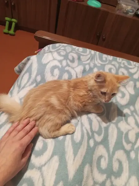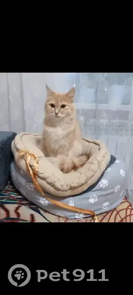 Окрас персиковый, светлые глаза, пушистая. Выпрыгнула в окно и пропала, люди нашли в капкане, а когда вытаскивали она сбежала в неизвестном направлении