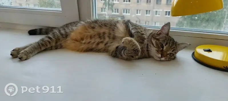 Выпала из окна 4 этажа. Окрас серый полосатый, упитанная, слезятся глазики. Ошейника нет. Пугливая, скорее всего прячется в укромном месте