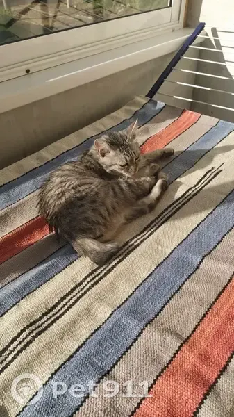 Серая полосатая. Большие глаза, пимпочка вместо хвоста. Мелкая, очень игривая и пугливая. Походка, как у бойцовской собаки. Выглядит злюкой. Она домашняя, на улице не гуляет. Сбежала утром и больше не вернулась. Искали ее весь день и вечер. Она очень красивая, а мы живем на дороге к остановке и церкви. Очень много людей и детей мимо нас ходит. Она очень мелкая, похожа на котенка.