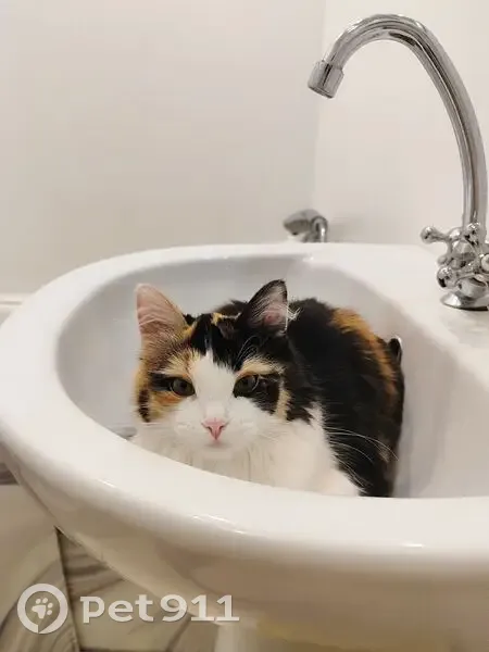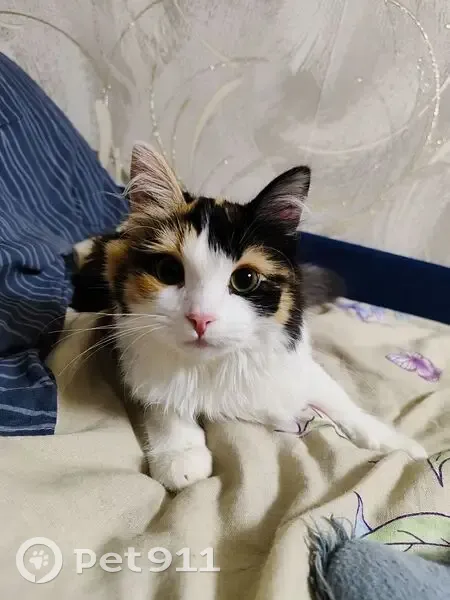 Трехшерстная, зелёные глаза Очень ласковая и игривая кошка, очень тактильная и любит лизать лицо человеку. Не до закрыли дверь квартиры, заметили через пол часа, в подъезде не обнаружили.