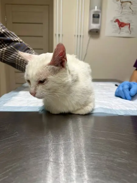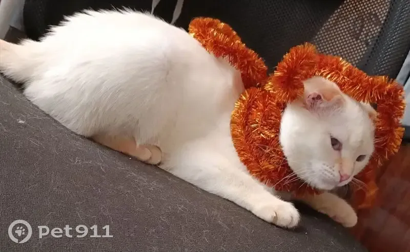 Пропала кошка, возраст приблизительно 5 лет. Окрас белый с небольшим количеством рыжего, уши висячие. Особые приметы: травма левого глаза (бельмо). У кошки эпилепсии, ей необходимо лечение.