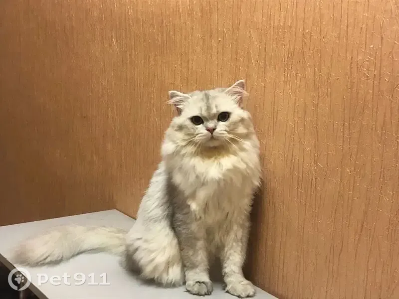 Шотландский котик, цвет белый с серебром, пушистый, не кастрирован, на задних лапках сбоку зарастающие проплешины от катышей. Кот домашний, улицу не знает совсем. Убежал через окно в ночь на 22 апреля. Важна любая информация!