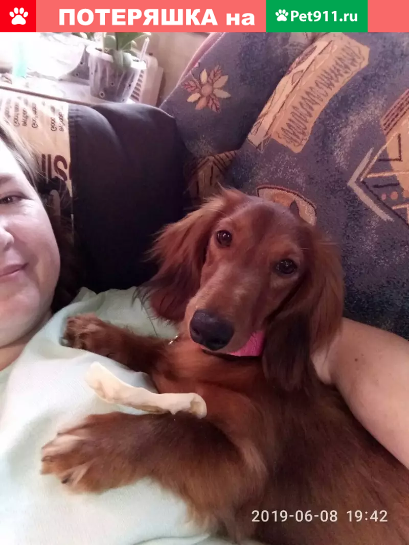 Сегодня ночью выскочила из дома на улицу длинношерстная такса. Рыжая, молодая, Кличка Ива, розовый ошейник, бирка адресник в виде косточки с надписью Марго( временно от старшей собаки) и номер телефона. Местоположение дома СНТ ВИКТОРИЯ 2,район в конце рябинового проезда, прыгнула в ручей от родника, испугавшись чегото побежала в сторону красной байдарки и СНТ ВИКТОРИЯ. Огромная просьба придержать и позвонить, Алексей. Собаке 7 месяцев, чужих может бояться. Расклеены ориентировки, уже звонили, что видели в парке Победы и рядом, ездили, не нашли, могла побежать в сторону Волги от парка Победы. Огромная просьба если увидите ее, держать в поле зрения и позвонить нам! Очень переживаем !!!!