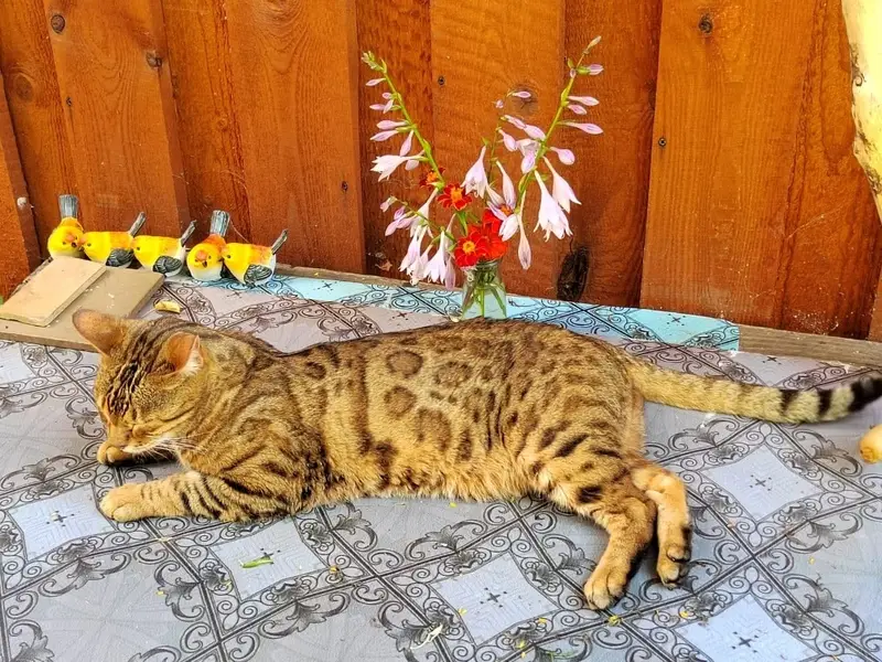 Глаза зеленые. В связи с состоянием здоровья- прогиб позвоночника, шаткая походка. Стерилизованная.