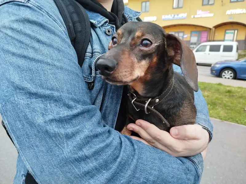 Мальчик, 5 мес, зовут Грей,окрас черно-подпалый, хвост купирован, ушки частично стоят! Убежал с поводка, поэтому без ошейника! Он первый день в Москве.
