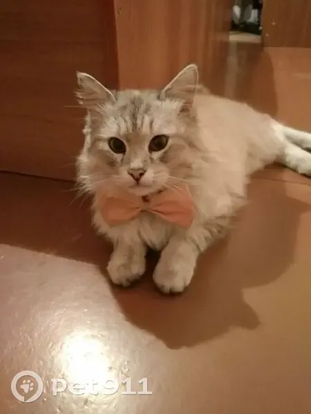 Ярко голубые глаза, основной оттенок шерсти белый со смесью серого в некоторых участках, например на хвосте, верстка длинная. Возможна ранка на подбородке, ошейника на момент пропажи не было