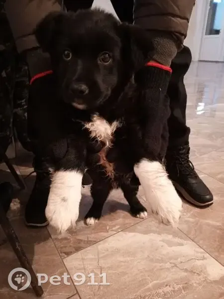 Найден щенок мальчик чёрного цвета, грудка и кончики лапок и хвоста белого цвета, на шее тонкий ошейник чёрного цвета ( на одном из фото видно). Найден г. Козельск Калужская область ул. Сенина1 около магазина "Сотник". Ищем старых или новых хозяев.