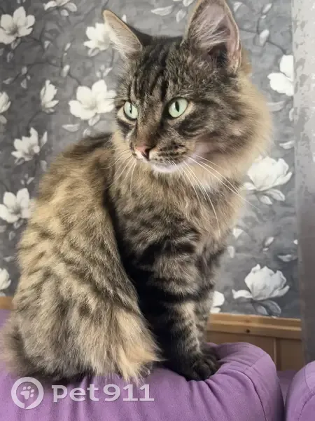 Пропал кот, зовут Сэм. Коричнево-черный окрас шерсти, пушистый, глаза зеленые, ошейник коричневого цвета с адресатником. С утра открыл дверь лапой и убежал на улицу