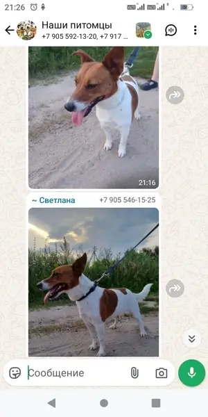 Пропала собака 8 месяцев мальчик Джек Рассел , просьба нашедших позвонить за вознаграждение . Данная собака друг больного ребёнка ! Очень просим сообщить