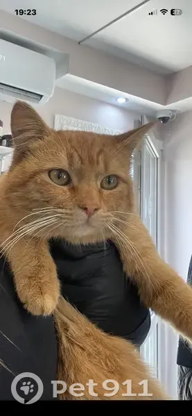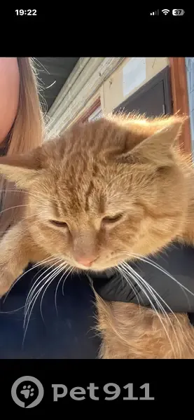 Пропал рыжий кот с голубым ошейником, вырвался из рук и убежал