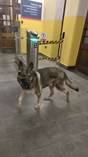 Окрас восточно-европейской овчарки, рост примерно по колено, добрый, тянется к людям, любит вставать передними лапами на грудь. Возраст примерно год.