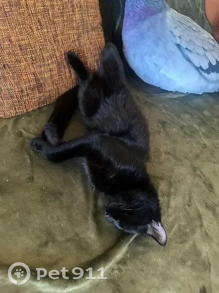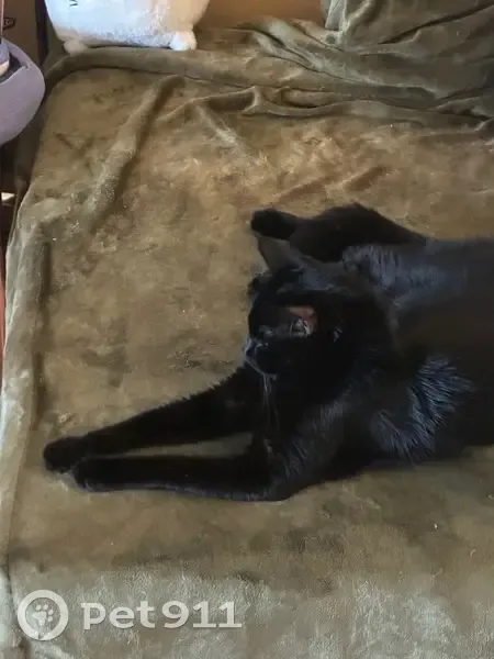 Найден лощеный черный кот. Большие лапы и длинный хвост. Ухоженный, моется постоянно, блох нет. Ест человеческую еду, корм не особо. Ласковый, ходит в лоток. Видно что домашний