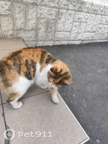 На предприятие прибилась кошка. Внешне видно, что домашняя - упитанная, чистая, блох не увидел. Возраст примерно год-полтора. Возможно стерилизованная. Очень ласковая, контактная. Окрас трехцветный - рыжий, серый и белый. На носу с правой стороны рыжее пятно. По всем признакам видно, что к жизни на улице не приспособлена. Вероятно потерялась в районе ТЦ Красная площадь, Ягодина, Метальникова, Баскет холл.