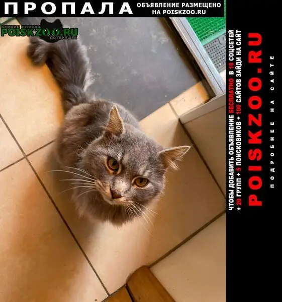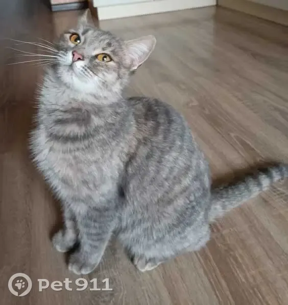 Серая с рыжими пятнами. Подбросили в подъезд. Очень ласковая, доверяет людям, игривая, кушает сухой и влажный корм. В квартире чувствует себя комфортно, явно домашняя. К лотку приучена.