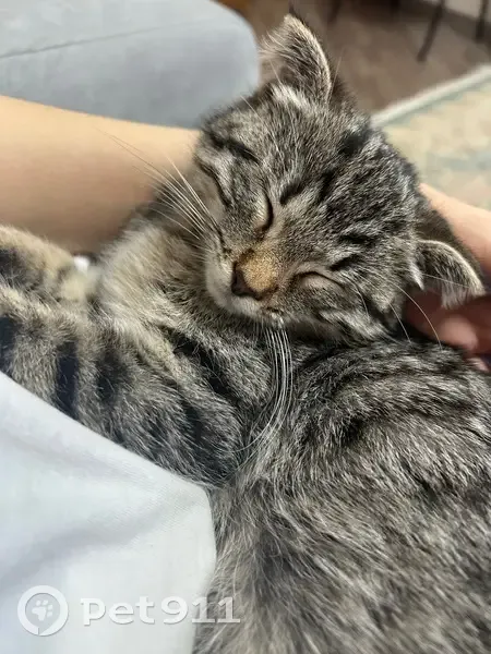 Сидела под трубой и истошно мяукала. Как только согрелась в куртке начала мурчать. Видимо долго не ела, была очень голодной. К ветеринару сводила ее, здоровая, блох/клещей нет. Скорее всего была домашняя, так еще и метис британца. Очень ласковая и послушная девочка, пошла сразу на лоток дома. Оставить себе нет возможности, очень срочно ищем бывшего или будущего хозяина!