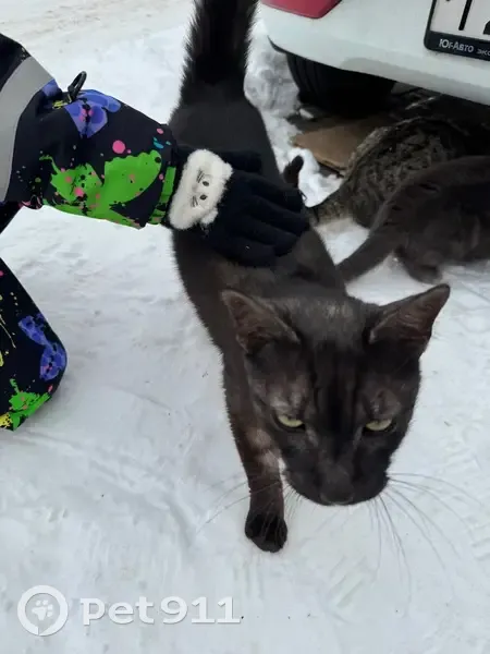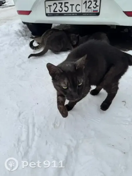 Черный котик с серым подпалом, крупная вытянутая мордочка, очень ласковый, плачет, видимо в стрессе ждёт своих хозяев. Очень любит детей. Пока живет на улице в будке. Хозяин старый или новый найдись, очень скучает котейка. 79184449179