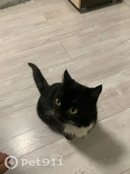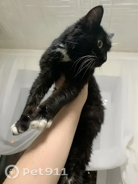 Около подъезда дома нашлась кошечка, молоденькая (примерно 5 месяцев) черного цвета с белой грудкой и «носочками». Чистая, ласковая и ручная. Ищу хозяев, или к кому можно ее приютить. Оставить не могу т. К. Моя кошка совсем не воспринимает других питомцев в доме. Готова помочь со стерилизацией, прививками