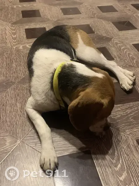 Девочка , Окрас бело-коричнево-чёрный, с ошейником , найдена в микрорайоне Музыкальный . Заметили что собака ищет путь домой по запаху и подбигает к каждому и мы стали не исключением