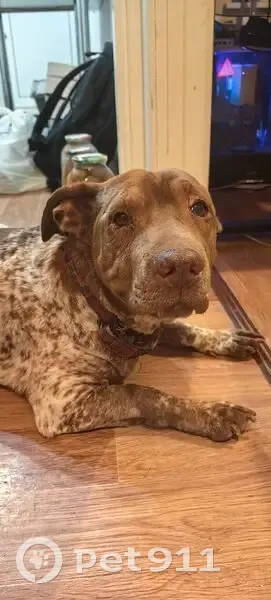 Пятнистая девочка, очень добрая и тихая. Лежала перед заведением, на парковке, и просто ждала кого-то. Ни ела, ни пила. На ней есть поводок в клеточку, на котором нарисован долматинец. Номера или имени на нем нет, адреса тоже. Сама по себе она пятнистая: беленькая в коричневое пятнышко.