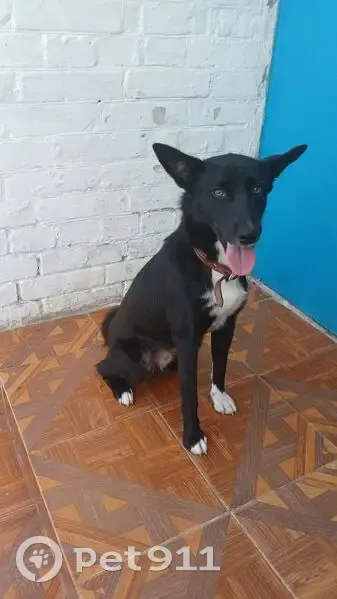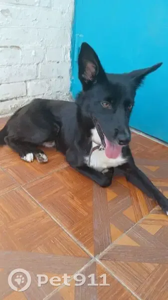Найдена собака, черно-белая, с ошейником. Центр. Район Ленина/Октябрьская. Домашний видно, ласковый, добрый. Но во дворе ему не рады, на улицу не хочет уходить.