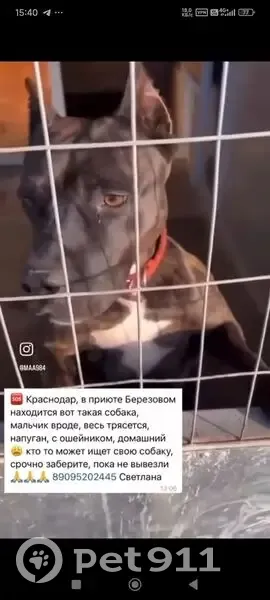 Найден службой отлова черный стаф в красном ошейнике, белый подпал на горле и не руди. Сейчас находится в приюте Берёзовом. Контакт приюта для связи 89095202445 - Светлана. Хозяева отзовитесь, пока не вывезли малыша