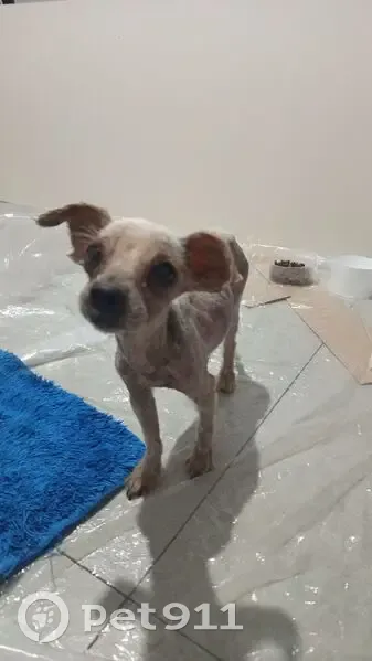 Собака сука йоркширский терьер. Цвет классический палевый. Была полулысая (аллергия). Не стерелезована. Очень худая (2,7 кг). По состоянию кожи - на улице очень давно. Подходила к людям, заглядывала в глаза. После того как отоспалась и поела, оказалась очень активной, контактной собачкой. Ищу хозяина!!!