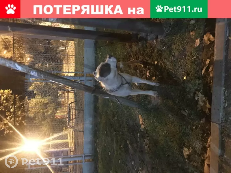Найдена собака 05.11.2019 примерно в 20.00 породы питбуль в районе ГМР, ул. Трудовой Славы, д. 40. Окрас белый с коричневыми пятнами, возраст 1,5 - 2 года. Скорее всего сорвался с поводка. Ищем хозяина. Собака сейчас находится на передержке. 8 (928) 334 58 16 - Елена.