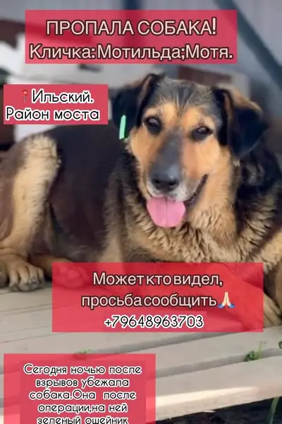 Найдена девочка лет 9-10, возможно беспородная. На ней хороший ошейник, а так же есть шов на боку. Швы ещё не сняли (синие нитки). Найдена на Красной около универмага "Краснодар". Неделю подкармливала её на Красной, а 19.07 забрала к себе, т.к. собака перестала есть и пить. Сейчас всё в порядке. Она у меня уже 2 недели. Искала хозяина через группы, искала ветклинику, где её прооперировали - безрезультатно. Сейчас мы живём в арендоватнной квартире, но нас выселяют. Дали срок до следующего воскресения. Пыталась её пристроить волонтёрам или в приют - не взяли. Хозяин, если тебе нужна твоя собака (или кто-то может её взять к себе), свяжитесь со мной, пожалуйста. Если не смогу найти старых или новых хозяев, буду отвозить её в Крым к маме, но и там её долго держать не сможем. У меня там сейчас 3 кота, 2 собаки, змея и лиса с лисятами. Одна собака из Днепропетровской области (её хотели усыпить), вторая из Абхазии (её сбила машина). Истории других животных ещё интереснее. Ещё 1 собаку я не потяну финансово, а у мамы просто не хватает времени ими заниматься, т.к. она много работает. Помогите найти хозяев новых или старых. Собака на улице пропадёт. Отдам: Краснодар, Краснодарский край, Крым, Ростов, Ростовская область. С тем, кто захочет её взять, буду общаться лично. Лишь бы кому не отдам - в неё вложено много сил.