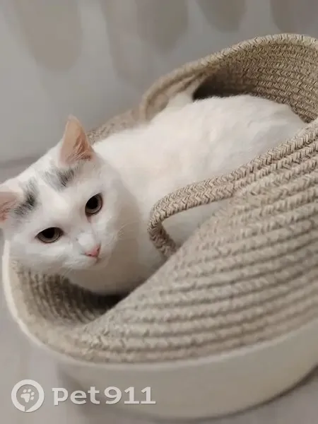 Найдена кошка белая, с пятнышками на голове....