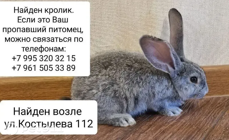 Окрас серый, ручной, домашний. Найден в куста...