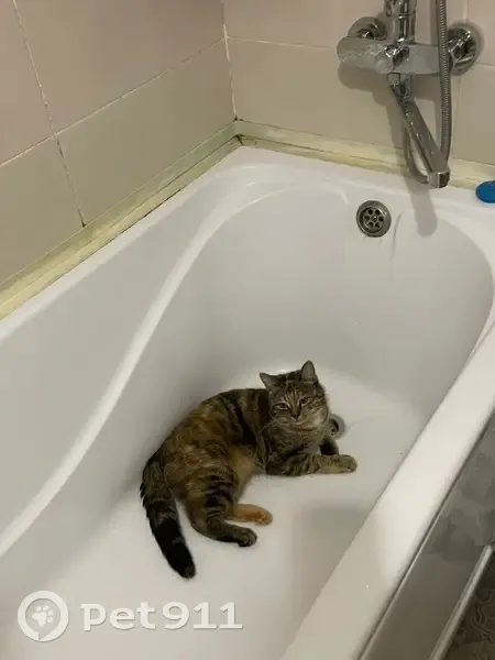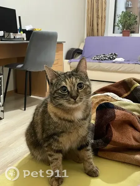 Трехцветная кошечка, возраст 1,2 года. Подушечки задних лап разного цвета. Усы белые с черными. Глаза желто-зеленые. Редко мяукает, ласковая, трусливая, но очень любопытная.