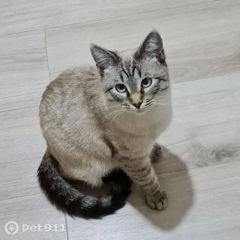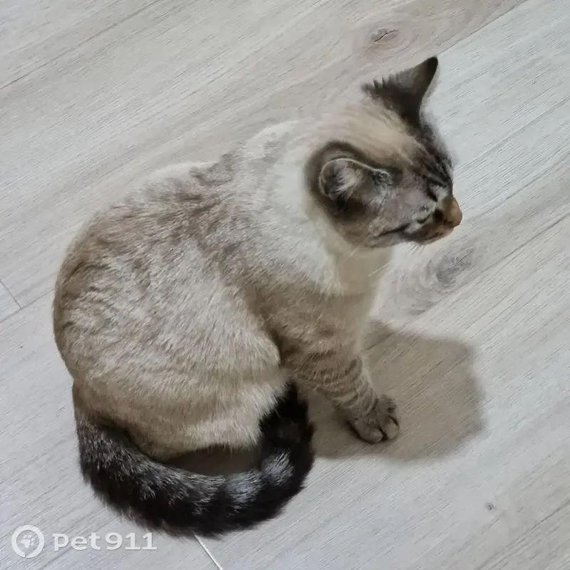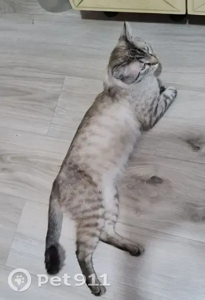 Пропал котик. Ушел 2 августа. Окрас тайской кошки. У кота пищевая аллергия и поэтому он чешется в области головы и шеи, из-за этого у него образовались на шее около холки ранки. Ему нужен спец. Корм и лечение. Котик красивый, полосатые лапки, на мордочке полоски и на лбу полоски в виде буквы "М". Спинка и хвостик серые, очень ласковый, отзывчивый( мяукает). Откликается на кличку Бельчик.
