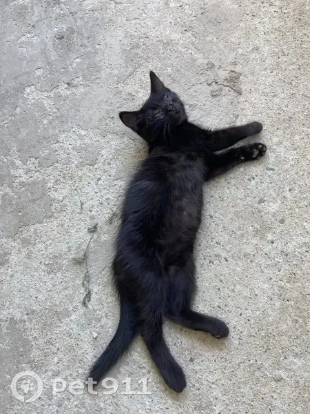 Черный котик с еле заметными светлыми полосками по бокам. Глаза оранжевые. Глазки немного слезятся. Очень ласковый. Возможно унесли дети. Просьба вернуть.